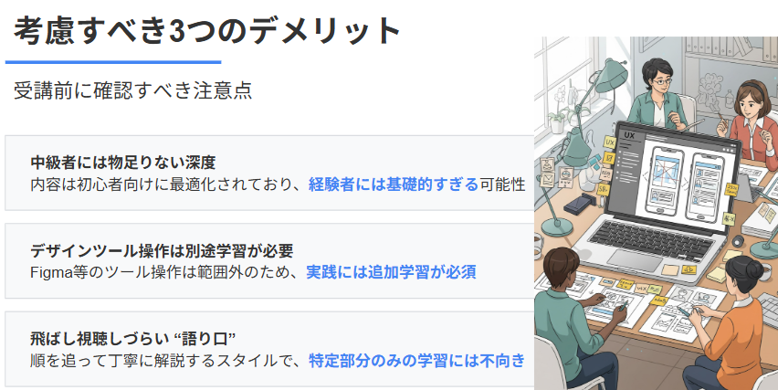 受講者の口コミを分析することで、講座のデメリットも明らかになります。
