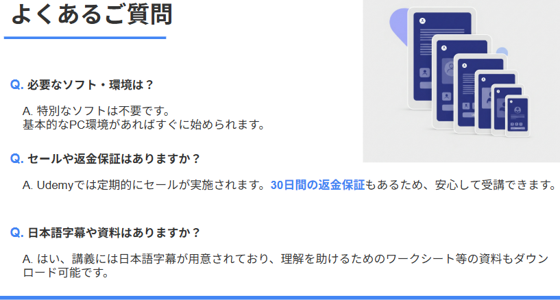 これにより、受講前に不安を解消し、スムーズに学び始めることができます。